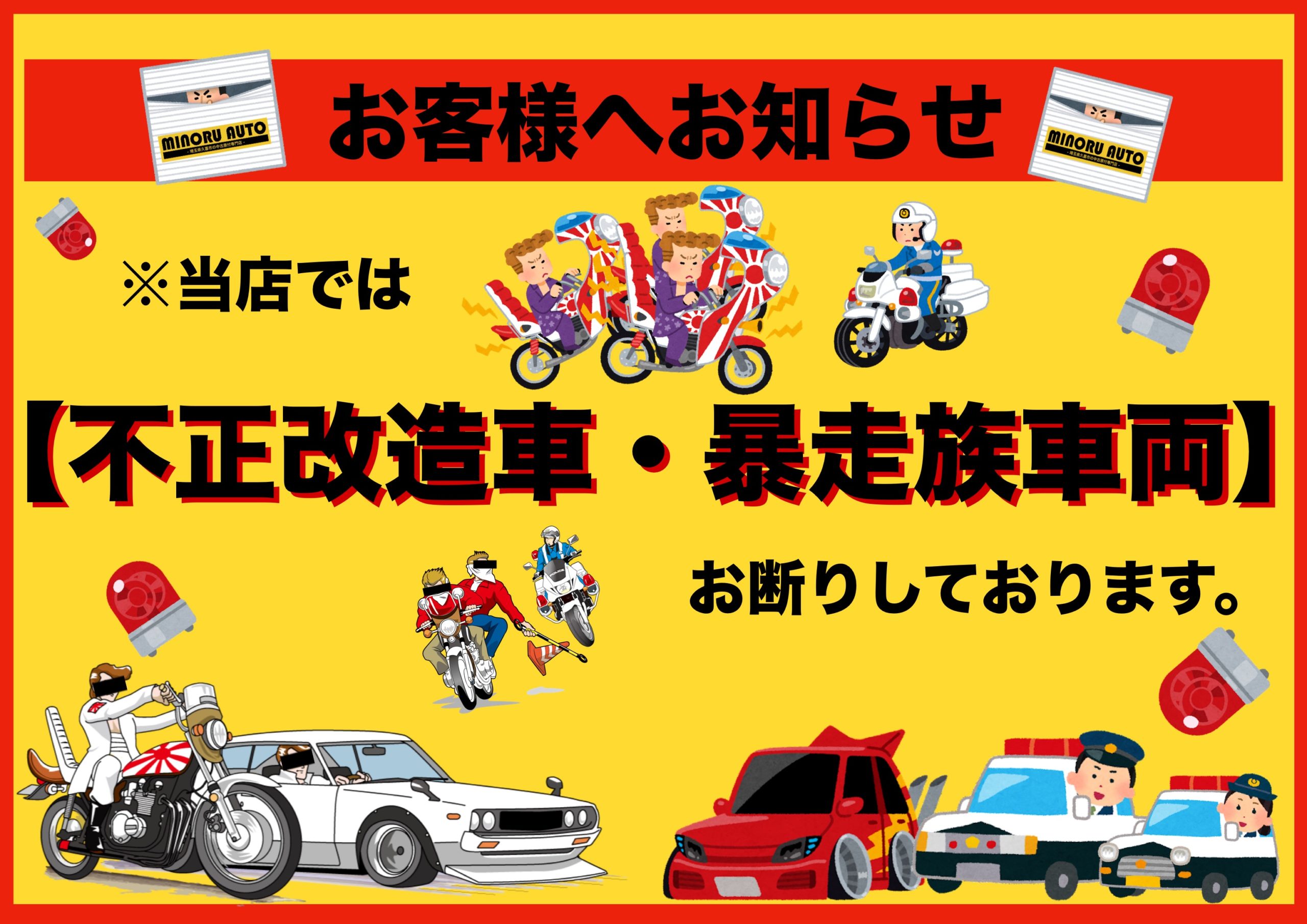 ミノルオートでは不正改造車と判断した場合